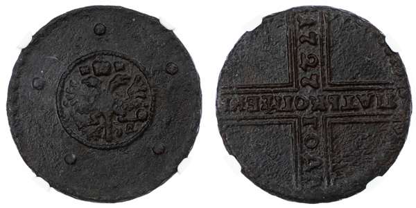 Russia, Empire. Catherine I CU 5 Kopeck. Naberezhny mint, 1727. Crowned double-headed eagle facing, holding sceptre and orb; crown above, H-Д across lower fields; all within dotted circular border, five pellets (mark of value) around; all within border / Denomination and date within cross. Bitkin -, cf. 272-288. 20.48g.