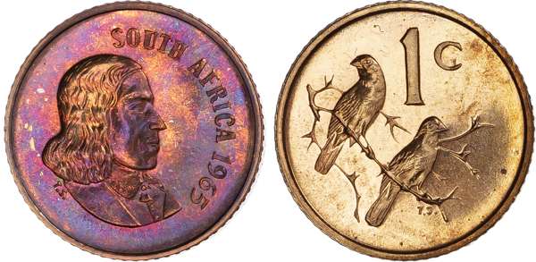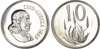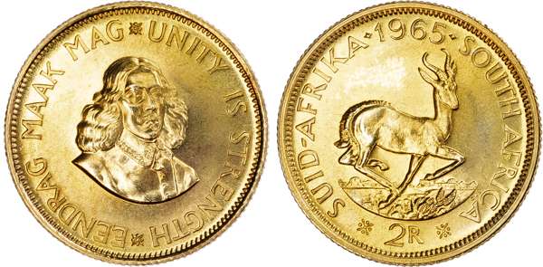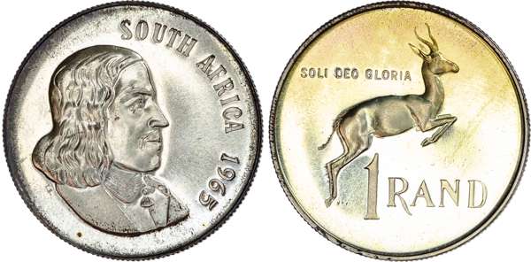 South Africa. Royal SA Mint Proof AV 9 Coin Year Set. 1965. Includes the 1 Rand and 1/2 Rand (Sovereign 7 half Sovereign) and 7 other proof silver and base metal coins. In original box of issue, no COA. Box and outer card damaged.
